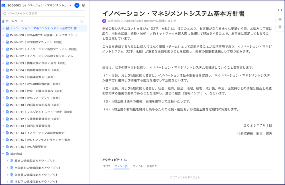 国際標準規格:ISOシリーズの導入・運用の経験がある方々であれば気付かれると思いますが、正にISOのガイドラインに書いてある通りなのです。ISO56001(イノベーション・マネジメントシステム)を例に、形骸化防止のために組織機能として仕組み化した例をご説明します。