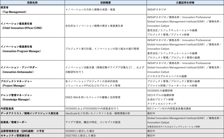 以下は、ISO56001(イノベーション・マネジメントシステム)を例にした役割です。